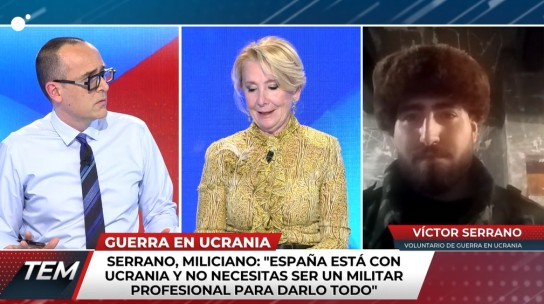 Esperanza Aguirre se encontraba trabajando en el plató cuando tocaba analizar la situación por la que atraviesan las personas que están involucradas en la guerra de Rusia y Ucrania. Para ello, el programa contactó con Víctor Serrano, un chico español que se encuentra en Ucrania trabajando como voluntario de guerra. A través de una videollamada, el joven estuvo hablando con los presentadores y sus tertulianos.