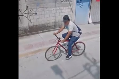 En la primera imagen vemos a un señor montado en bicicleta y, poco a poco, vemos a otro que circula por la calle que se cruza con la del primero… y todo apunta a que se van a encontrar en la esquina. Y, de hecho, se encuentran.